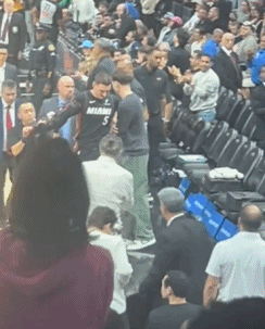 硬汉,热火队约维奇仅登场12秒便摔伤胳膊,随后戴上夹板微笑离场